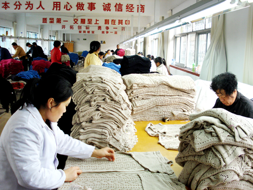 山東乳山工藝品有限責任公司始建于1956年,注冊資金1006萬元,占地面積1.19萬平方米,建筑面積2.55萬平方米,轄衣衫廠、抽紗廠兩個分廠,加工銷售機繡制品、針織衣衫、手工藝品、紡織輔料等。年加工總量880萬件(套),年銷售收入1.8億,80%以上產品銷往美國、加拿大、韓國、日本等國家和地區。現有在職職工600人。擁有各類毛衫生產設備1000多臺,公司總資產1.4億。